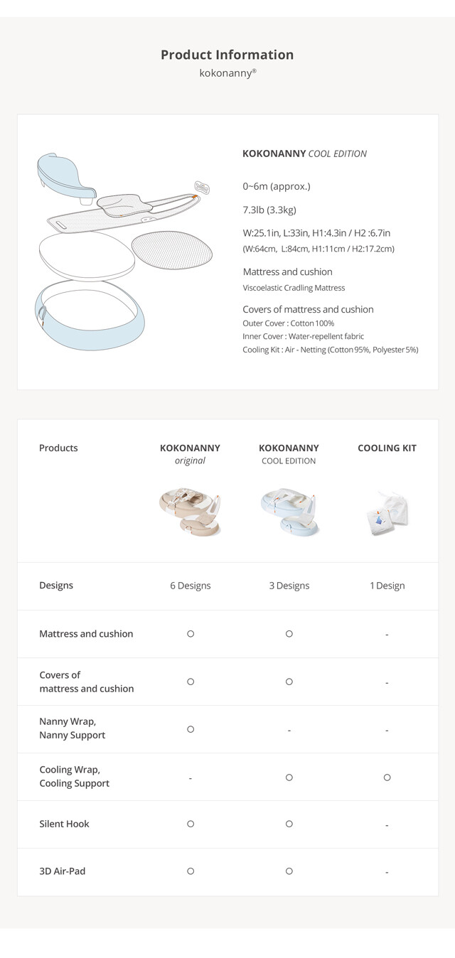 KOKONANNY COOL EDITION is for babies who are more sensitive to heat, sweat a lot, or in a hotter environment.