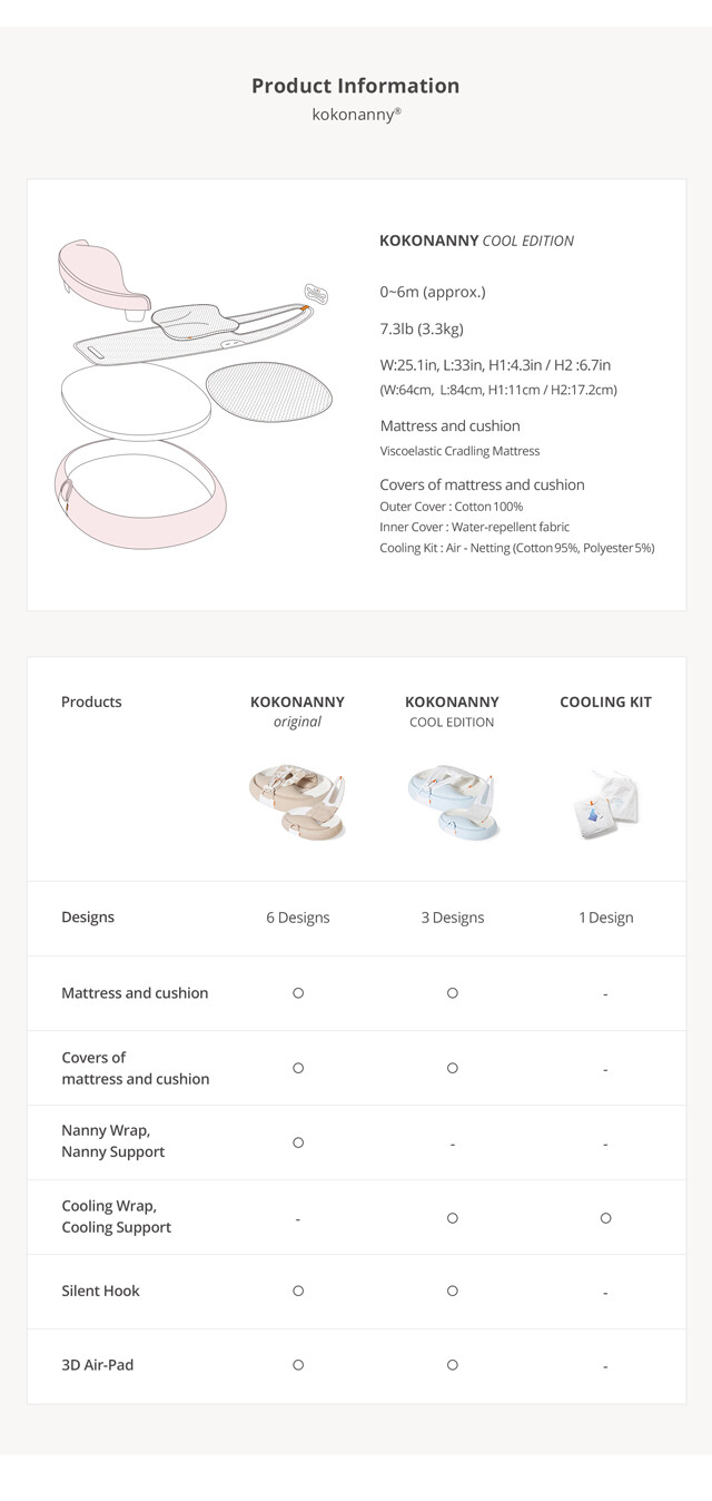 KOKONANNY COOL EDITION is for babies who are more sensitive to heat, sweat a lot, or in a hotter environment.